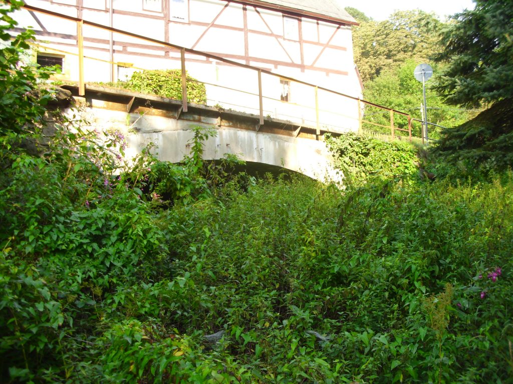 Diese Brücke befindet sich auf der ehemaligen Trasse der Weißeritztalbahn und überquert den Mühlgraben der ehemaligen Seifersdorfer Mühle. Am früheren Streckenkilometer 8,919 gelegen erstreckt sie sich auf einer Länge von 9.80 Meter. Sie wurde 1882 von der Firma Dyckerhoff & Widermann erbaut und gilt als die Erste Brücke aus Stampfbeton in Deutschland.